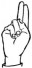 На ћирилици написано АНЂЕЛА ДОРОНТИЋ састоји се из 14 слова [?]. Исписано ћириличном једноручном азбуком за глувонеме: